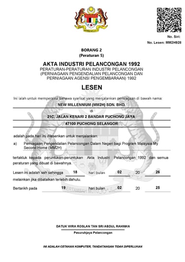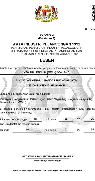 ✅ 持有马来西亚旅游、艺术与文化部(MOTAC)认可的 MM2H 官方牌照